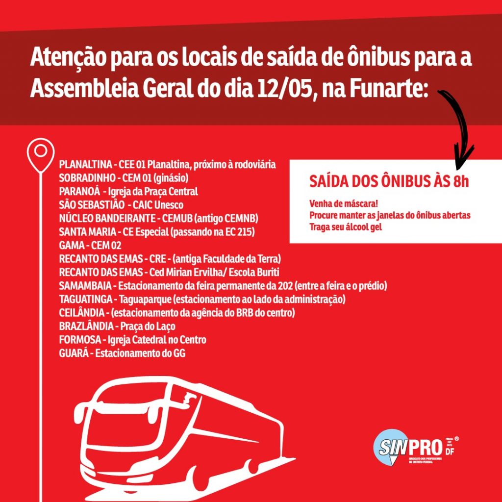 Essa é a quarta assembleia geral deste ano. Veja abaixo os locais de saída dos ônibus: