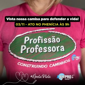 Diante da truculência do governador e da secretária de Educação; diante dos riscos aos quais a comunidade escolar será exposta com o retorno 100% presencial; por respeito às tantas vítimas da Covid-19 e suas famílias, nesta quarta-feira, 3, às 9h, vamos vestir nossa camisa – profissão professor(a) e profissão orientador(a) educacional – para ir ao ato no edifício Phenícia!