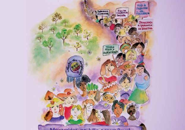 “O atual momento nos convoca a lutar pela construção da democracia e pela manutenção dos direitos. A Marcha das Margaridas tem pela frente um período de desafios na resistência”, afirma trecho da publicação sobre a Marcha das Margaridas 2019.